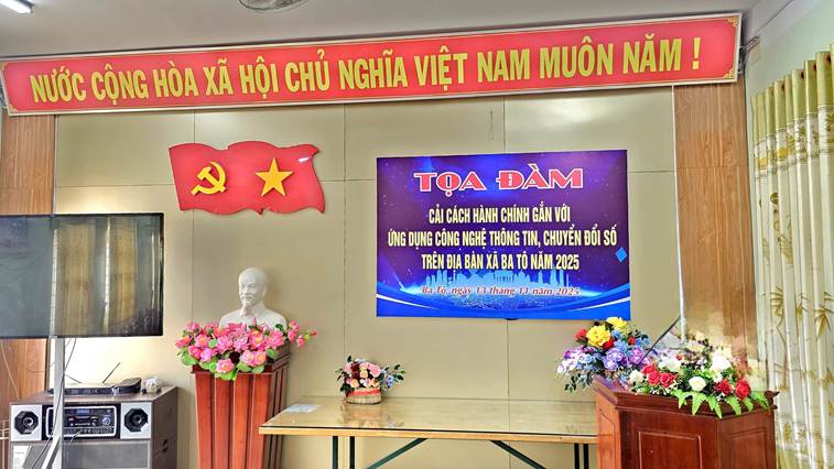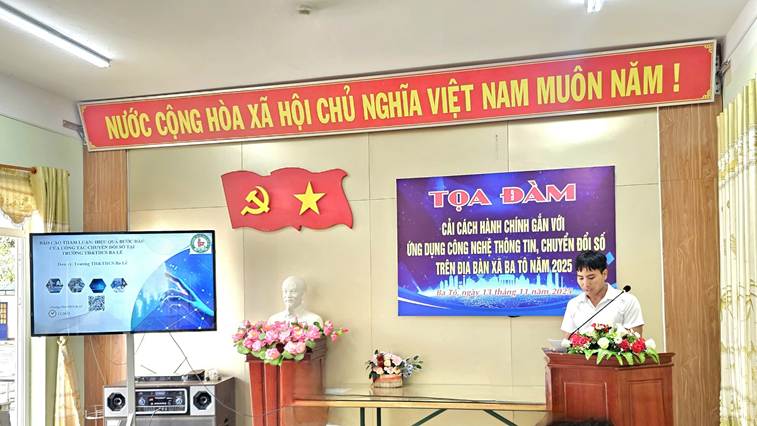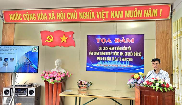 Sáng ngày 13/11/2025, tại Hội trường Trường tiểu học Ba Tô, Ủy ban nhân dân xã Ba Tô tổ chức Tọa đàm “Cải cách hành chính gắn với ứng dụng công nghệ thông tin, chuyển đổi số trên địa bàn xã Ba Tô năm 2025”.