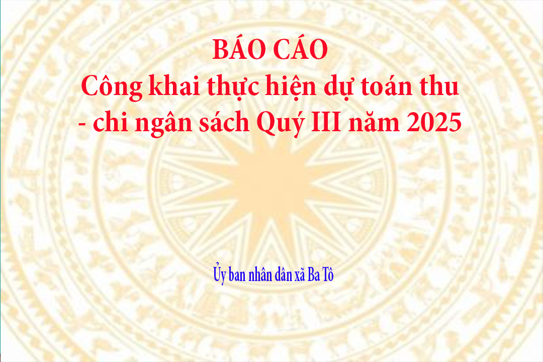 Chủ nhật, 16/11/2025 | 11:06 A- A A+ | Báo cáo công khai thực hiện dự toán thu - chi ngân sách Quý III năm 2025 Giọng nữ miền Bắc Giọng nam miền Bắc Giọng nữ miền Nam Đọc bài Chia sẻ Lưu File đính kèm: Báo cáo công khai thực hiện dự toán thu - chi ngân sách Quý III năm 2025 Tags: thu chi ngân sách