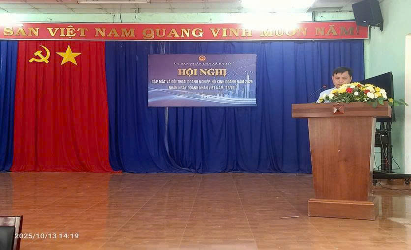 Chiều ngày 13/10/2025, tại Nhà Văn hóa UBND xã, Ủy ban nhân dân xã Ba Tô tổ chức gặp mặt doanh nghiệp, hộ kinh doanh, nhà đầu tư năm 2025 nhân Ngày Doanh nhân Việt Nam (13/10).