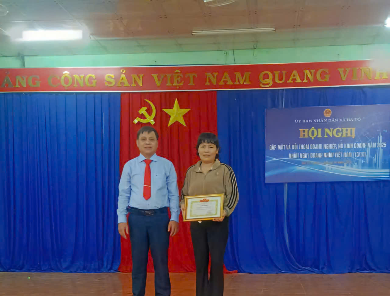 Buổi gặp mặt là dịp để chính quyền xã tri ân và khích lệ tinh thần doanh nhân địa phương, lan tỏa phong trào “Kinh doanh văn minh – trách nhiệm – vì cộng đồng”, góp phần xây dựng xã Ba Tô ngày càng phát triển bền vững.