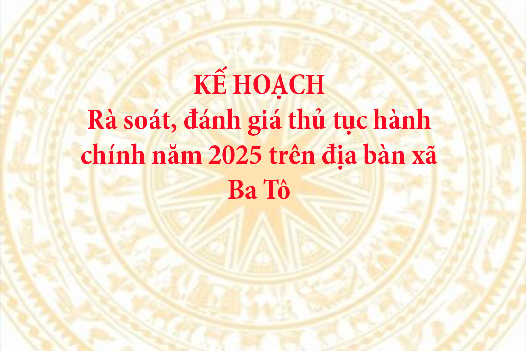 Kế hoạch rà soát, đánh giá thủ tục hành chính năm 2025 trên địa bàn xã Ba Tô
