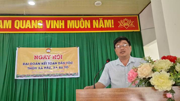 Phát biểu chỉ đạo tại Ngày hội, đồng chí Nguyễn Hồng Quân – Bí thư Đảng ủy, Chủ tịch HĐND xã Ba Tô ghi nhận và biểu dương tinh thần đoàn kết, sự nỗ lực vươn lên của cán bộ, đảng viên và Nhân dân thôn Xà Râu trong thời gian qua. Thôn đã tích cực thực hiện hiệu quả các phong trào thi đua, nhất là trong phát triển kinh tế, giảm nghèo bền vững, xây dựng hương ước, quy ước phù hợp với thực tế đời sống, đảm bảo nếp sống văn minh, an ninh trật tự và vệ sinh môi trường.