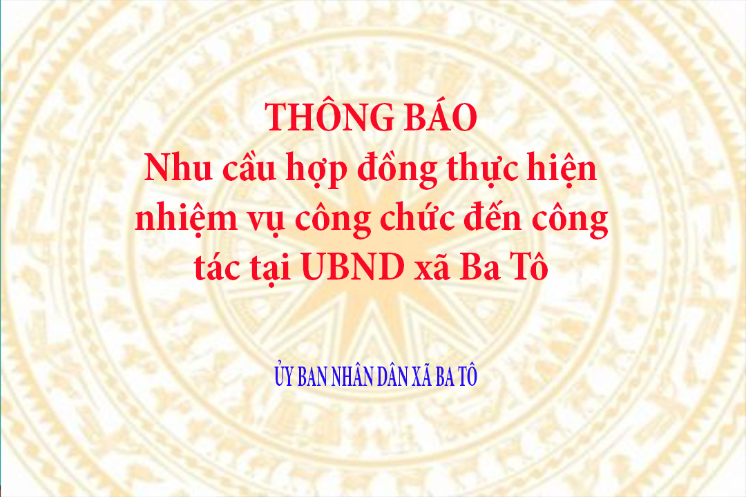 THÔNG BÁO: Nhu cầu hợp đồng thực hiện nhiệm vụ công chức đến công tác tại UBND xã Ba Tô