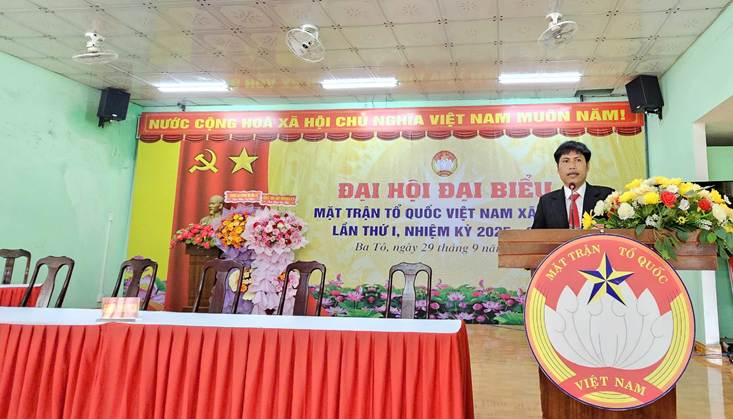 Phát biểu chỉ đạo tại Đại hội đồng chí Nguyễn Hồng Quân – Bí thư Đảng ủy, Chủ tịch Hội đồng nhân dân xã đã ghi nhận, biểu dương những kết quả đạt được trong nhiệm kỳ qua, đồng thời định hướng, giao nhiệm vụ cho Ủy ban MTTQ Việt Nam xã Ba Tô trong nhiệm kỳ tới tiếp tục đổi mới nội dung, phương thức hoạt động, củng cố khối đại đoàn kết toàn dân, góp phần thực hiện thắng lợi các mục tiêu phát triển kinh tế – xã hội, quốc phòng – an ninh của địa phương.
